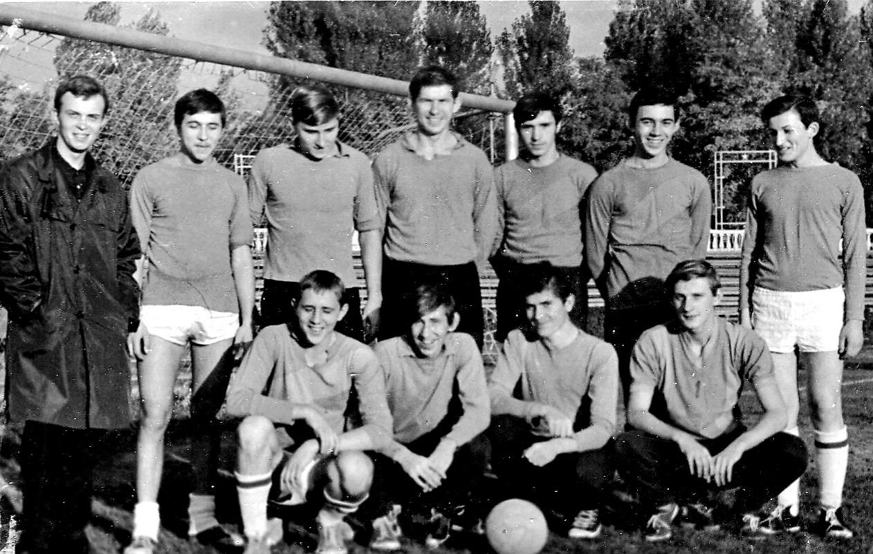 Футбольная команда музичного училища (роки навчання 1968-1972): Віталій Нікулін, Василь Булижний, Микола Шишкін, Віталій Пінчук, Василь Янченко, Олександр Могила, Олександр Рудько, Сергій Вовк0, Юрій Новиков. Фото з групи https://www.facebook.com/photo?fbid=10163812370871952&set=pcb.818988697805730