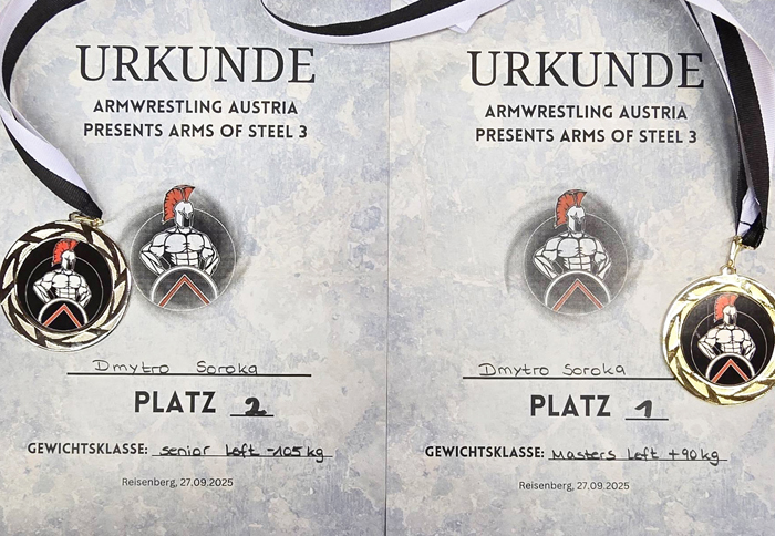 У Відкритому Чемпіонаті Австрії з армрестлингу, який відбувся 27 вересня кам`янчанин Дмитро Сорока здобув дві нагороди.